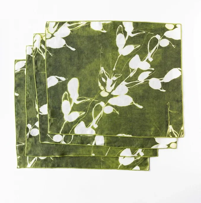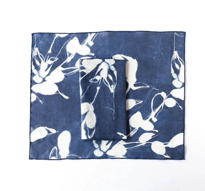 Recoloring and building repeats using Goldie Home's watercolored paintings to create pillows, runners, placemats, and napkins.